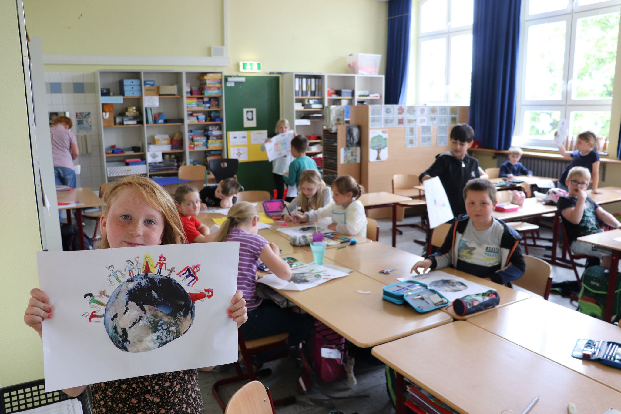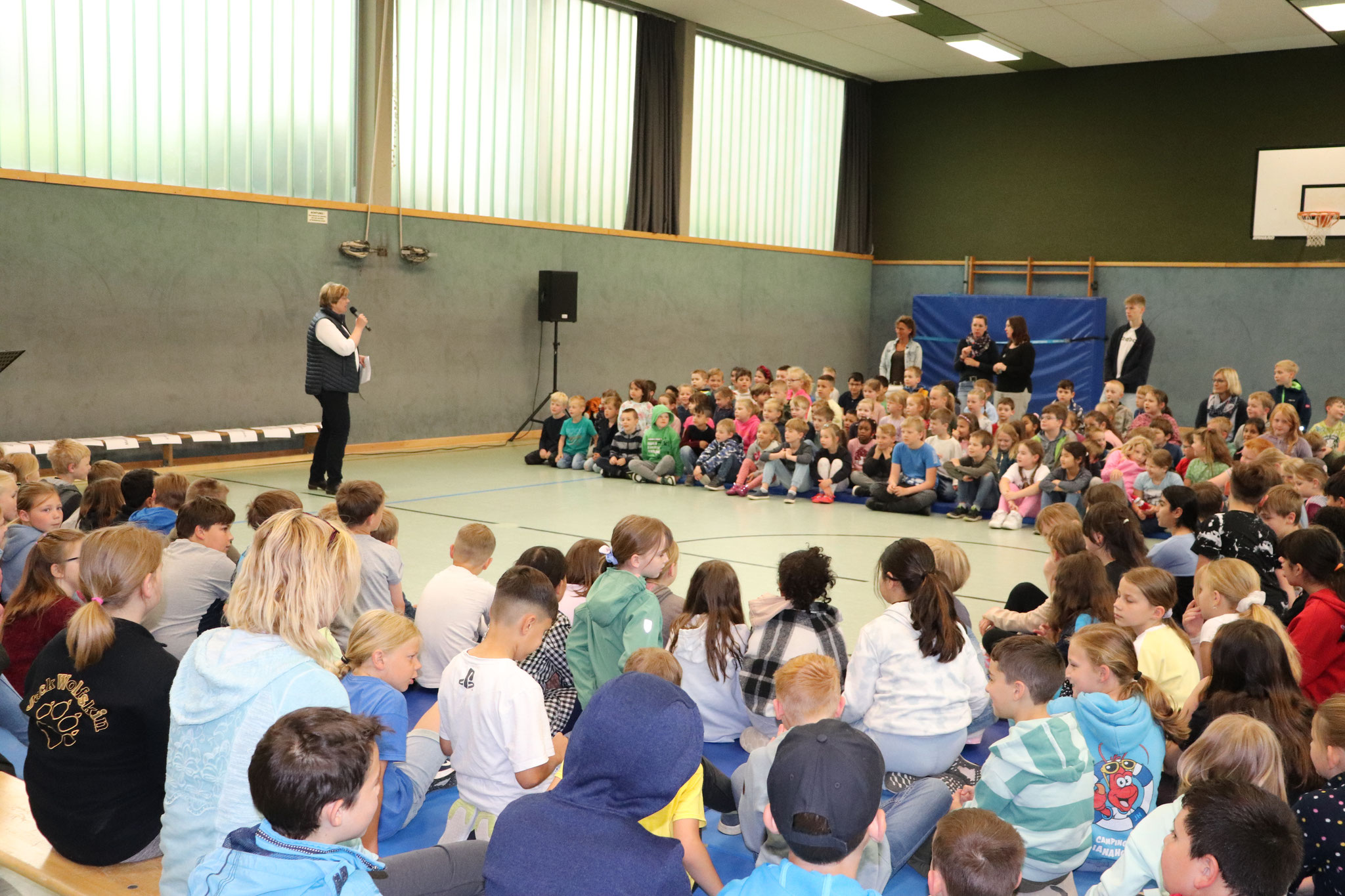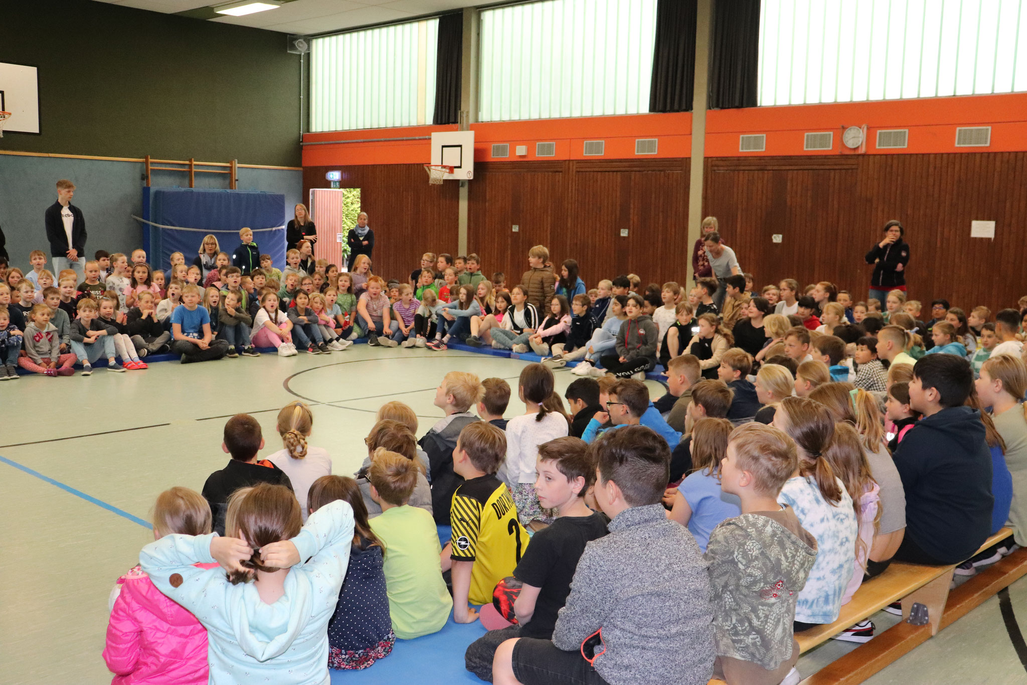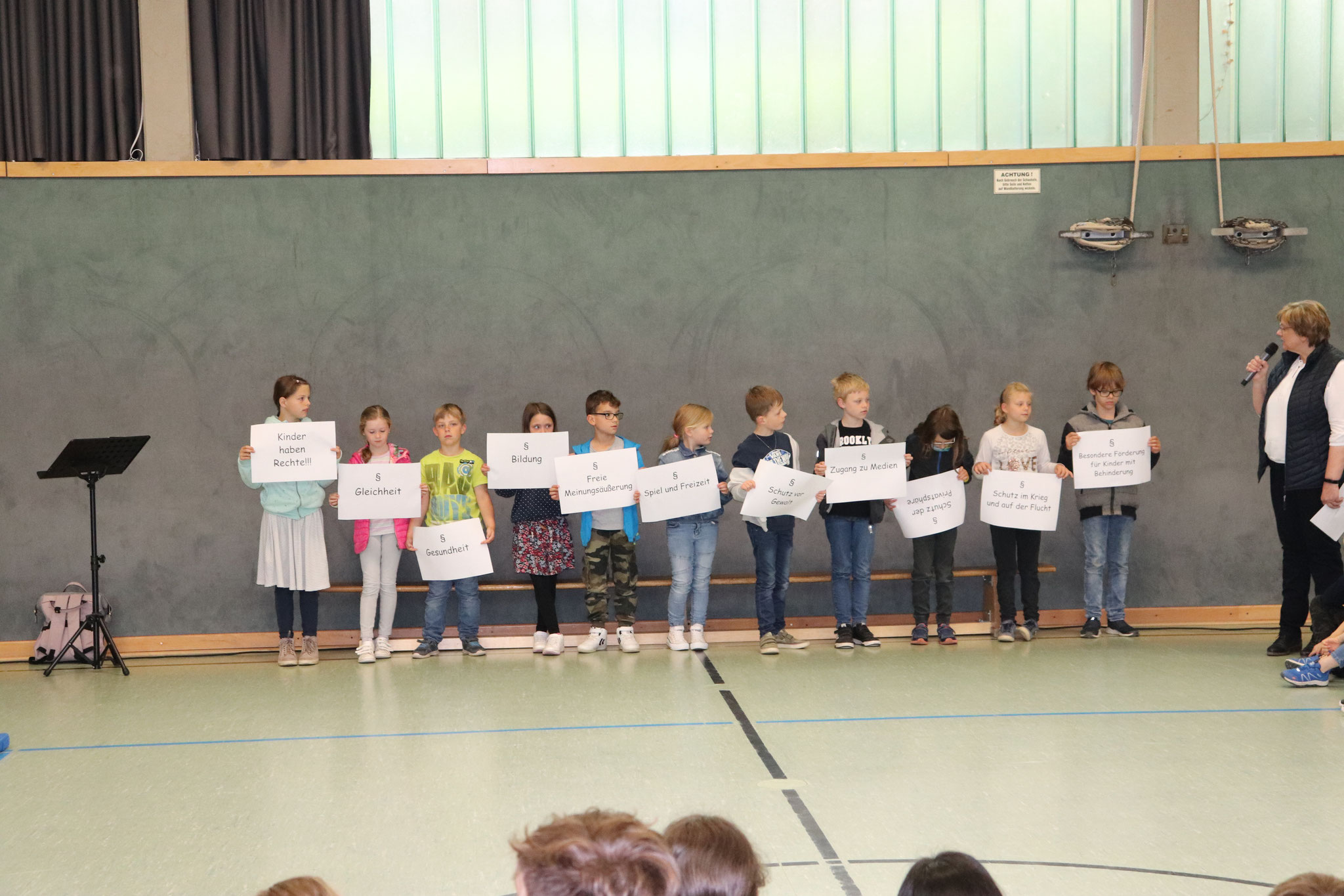 Am 2.6.2023 stand die Hubertusschule ganz im Zeichen des Themas "Kinderrechte". Im Rahmen eines gemeinsamen Beginns in der Turnhalle wurden die Kinder auf das Thema eingestimmt. Überrascht wurden alle von dem Besuch des Grafen Para, der sich sehr über das Kinderrechte-Lied freute, das lautstark für ihn gesungen wurde. Im Anschluss wurden in den Klassen die verschiedensten Kinderrechte thematisiert. So gab es z. B. zum Recht auf Spiel und Freizeit einen Spielzeugtag, zum Recht auf Kunst und Kultur einen Workshop in Kooperation mit dem Kevelaerer Museum oder zum Recht auf eine saubere Umwelt eine Pflanzaktion in Kevelaer. Im Nachmittagsbereich gab es weitere Aktionen und Projekte und zum Abschluss ein großes Farbspektakel, an das sich die teilnehmenden Kinder bestimmt noch lange erinnern werden. Geplant ist, einen solchen Kinderrechte-Tag an der Hubertusschule jährlich durchzuführen.