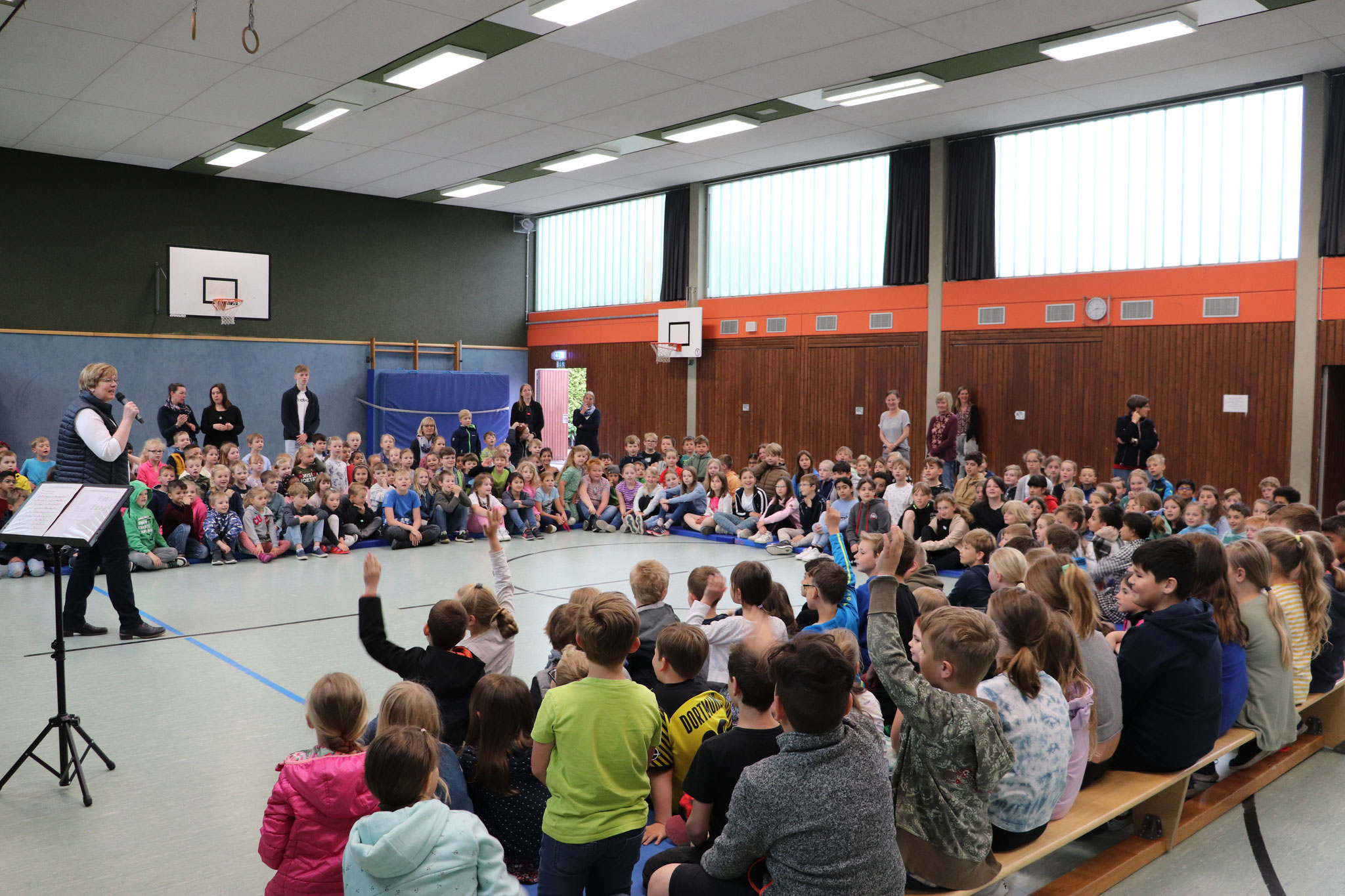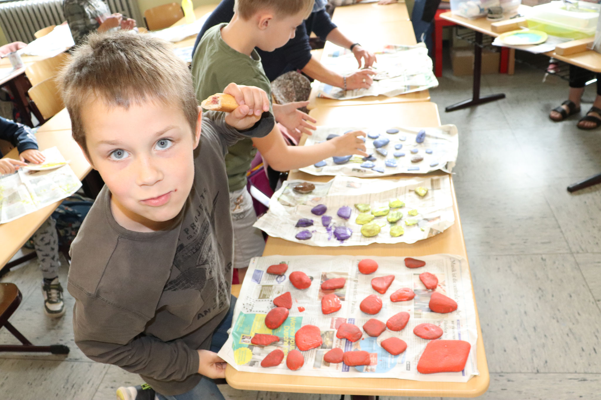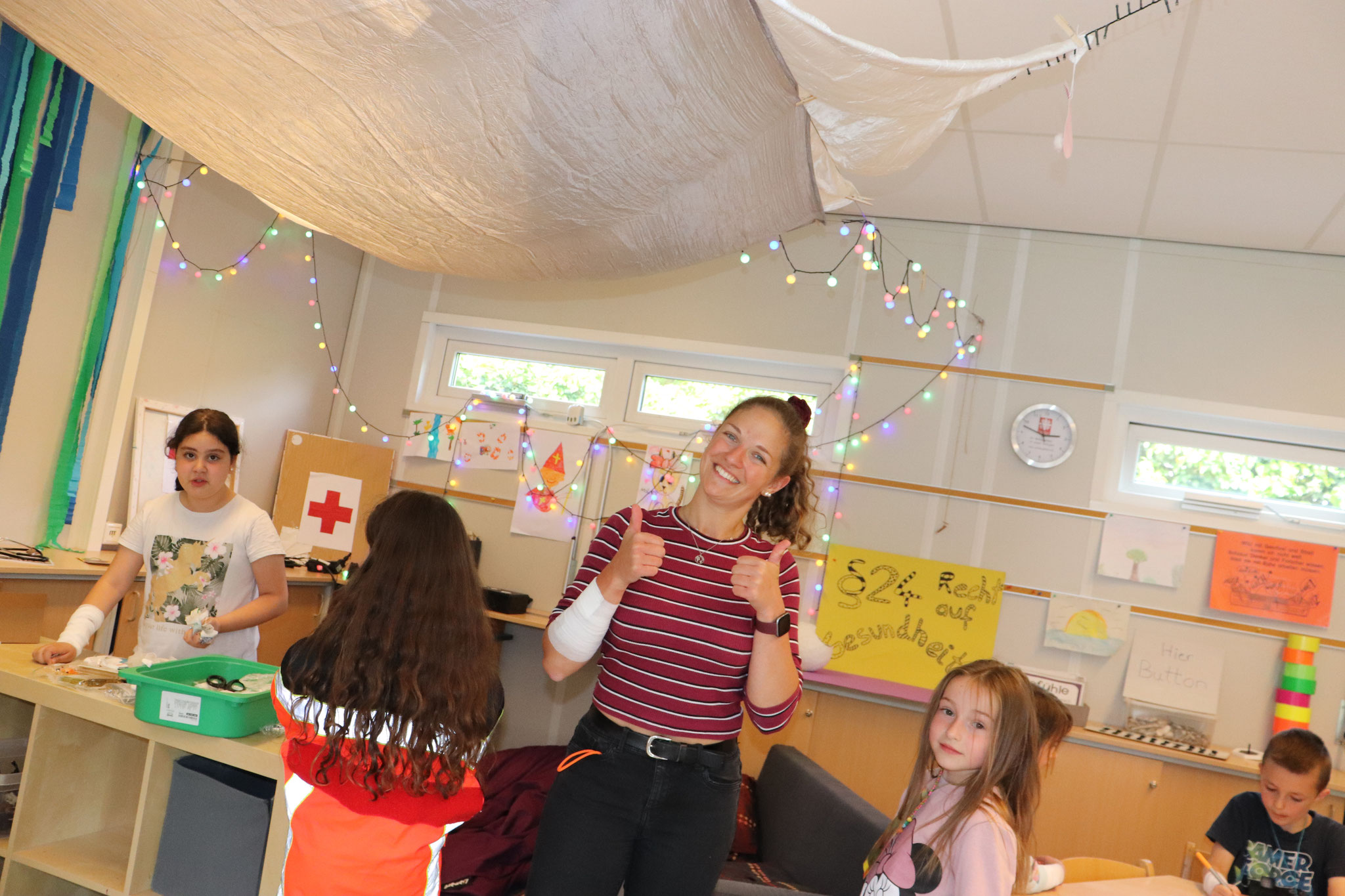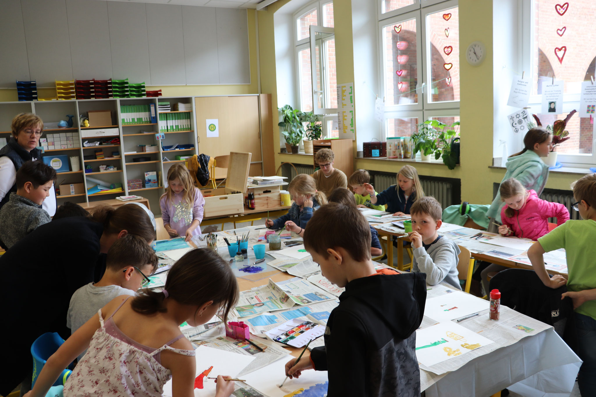 Am 2.6.2023 stand die Hubertusschule ganz im Zeichen des Themas "Kinderrechte". Im Rahmen eines gemeinsamen Beginns in der Turnhalle wurden die Kinder auf das Thema eingestimmt. Überrascht wurden alle von dem Besuch des Grafen Para, der sich sehr über das Kinderrechte-Lied freute, das lautstark für ihn gesungen wurde. Im Anschluss wurden in den Klassen die verschiedensten Kinderrechte thematisiert. So gab es z. B. zum Recht auf Spiel und Freizeit einen Spielzeugtag, zum Recht auf Kunst und Kultur einen Workshop in Kooperation mit dem Kevelaerer Museum oder zum Recht auf eine saubere Umwelt eine Pflanzaktion in Kevelaer. Im Nachmittagsbereich gab es weitere Aktionen und Projekte und zum Abschluss ein großes Farbspektakel, an das sich die teilnehmenden Kinder bestimmt noch lange erinnern werden. Geplant ist, einen solchen Kinderrechte-Tag an der Hubertusschule jährlich durchzuführen.