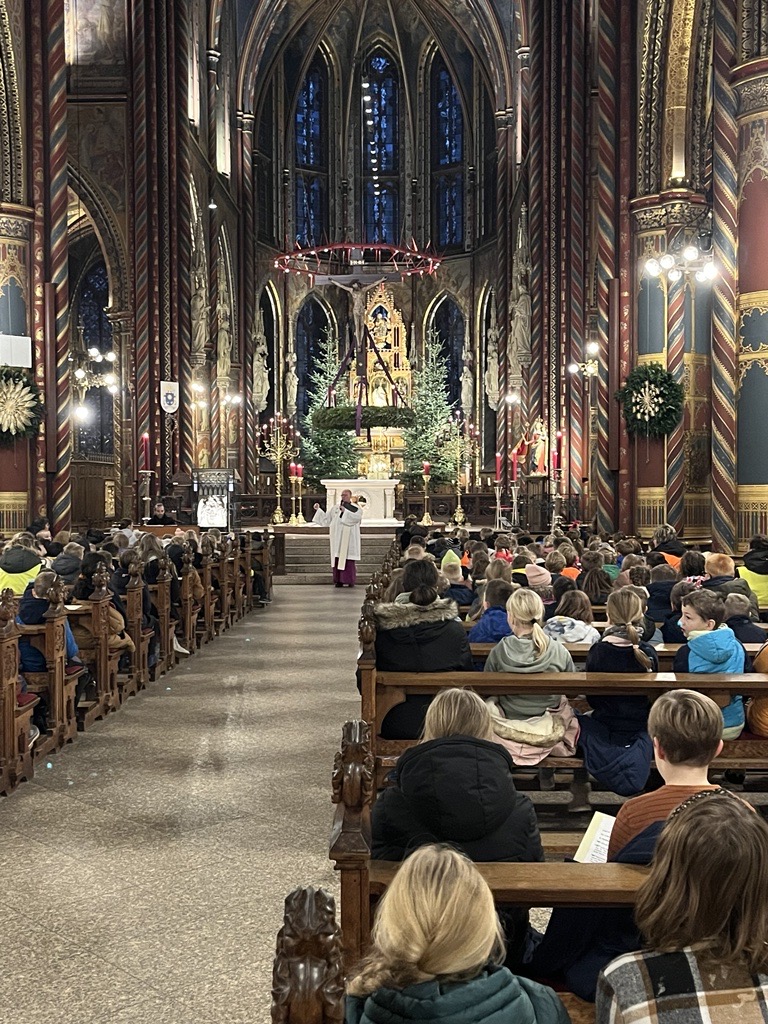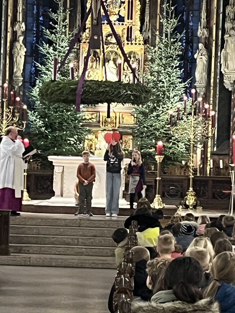 Am Mittwoch ging es dann zum Abschluss in die Basilika. Dort feierte Pastor Kauling mit uns seinen letzten Schulgottesdienst in Kevelaer. Thema des Gottesdienstes war "Ein offenes Herz haben". Auch wir können durch kleine Gesten zeigen, dass wir ein offenes Herz haben. Mit Gottes Segen wurden wir so in die wohlverdienten Ferien entlassen.