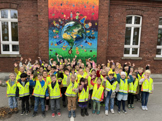 Wir möchten uns ganz herzlich bei unserem Förderverein bedanken. Dank finanzieller Unterstützung konnten für alle Kinder der ersten Klassen leuchtende Westen für die dunkle Jahreszeit angeschafft werden. Passend zu unserem Sachunterrichts-Thema „sicher im Straßenverkehr“ gehen (und fahren) die Erstklässler als gutes Beispiel voran und sind für einen sicheren Schulweg ausgerüstet.