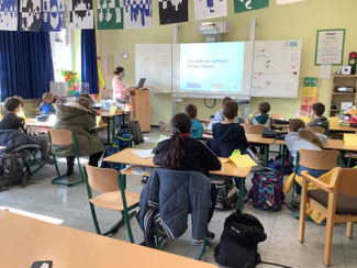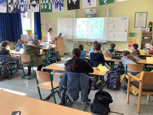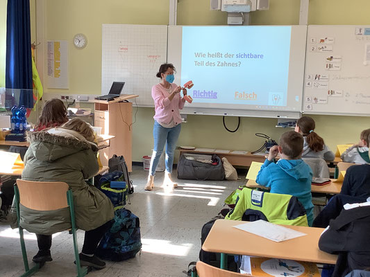 Frau Groß von der Zahnprophylaxe hat mit den Kindern der 4. Klasse über die Zahngesundheit gesprochen. Worauf muss man beim Zähneputzen achten? Was ist eine gute Ernährung für die Zähne? Welche Zahnkrankheiten gibt es und wie kann man die vermeiden? Zunächst haben die Kinder eine sehr informative Filmsequenz gesehen und sie konnten anschließend in einem Fragequizz an der Tafel ihr Wissen testen. Das hat viel Spaß gemacht und alle haben viel gelernt.