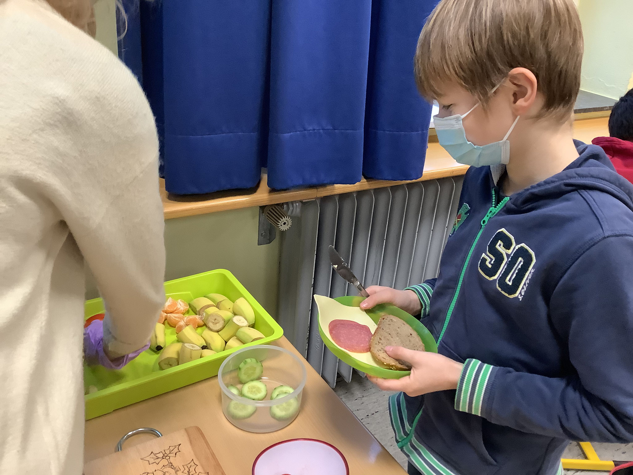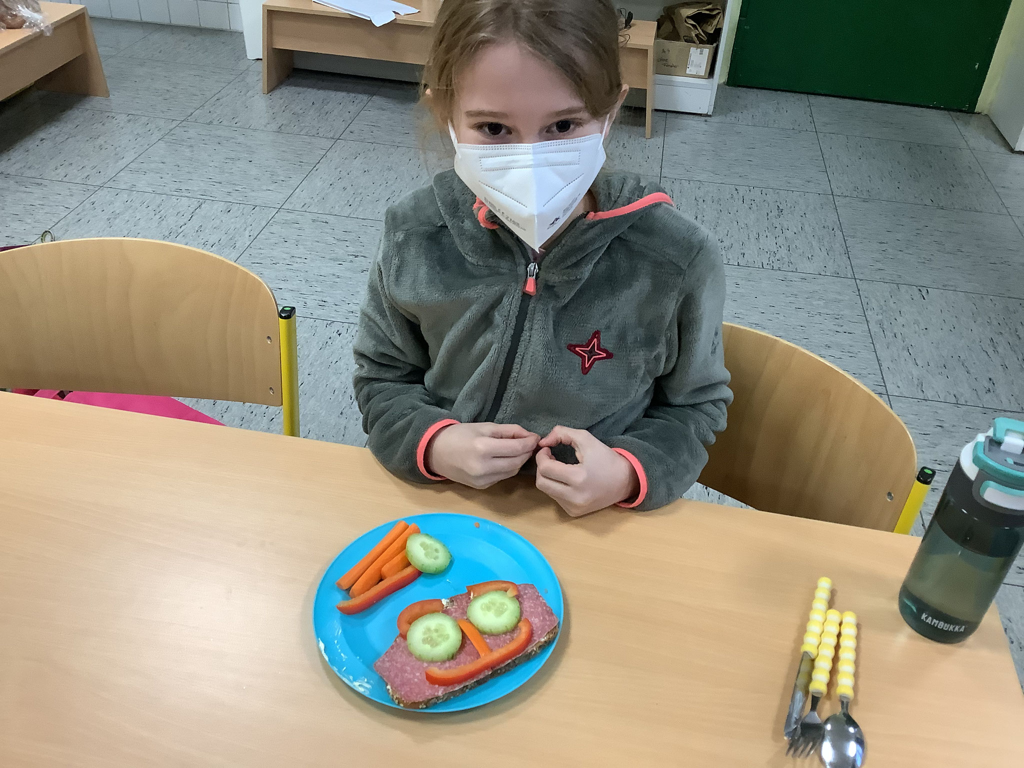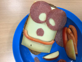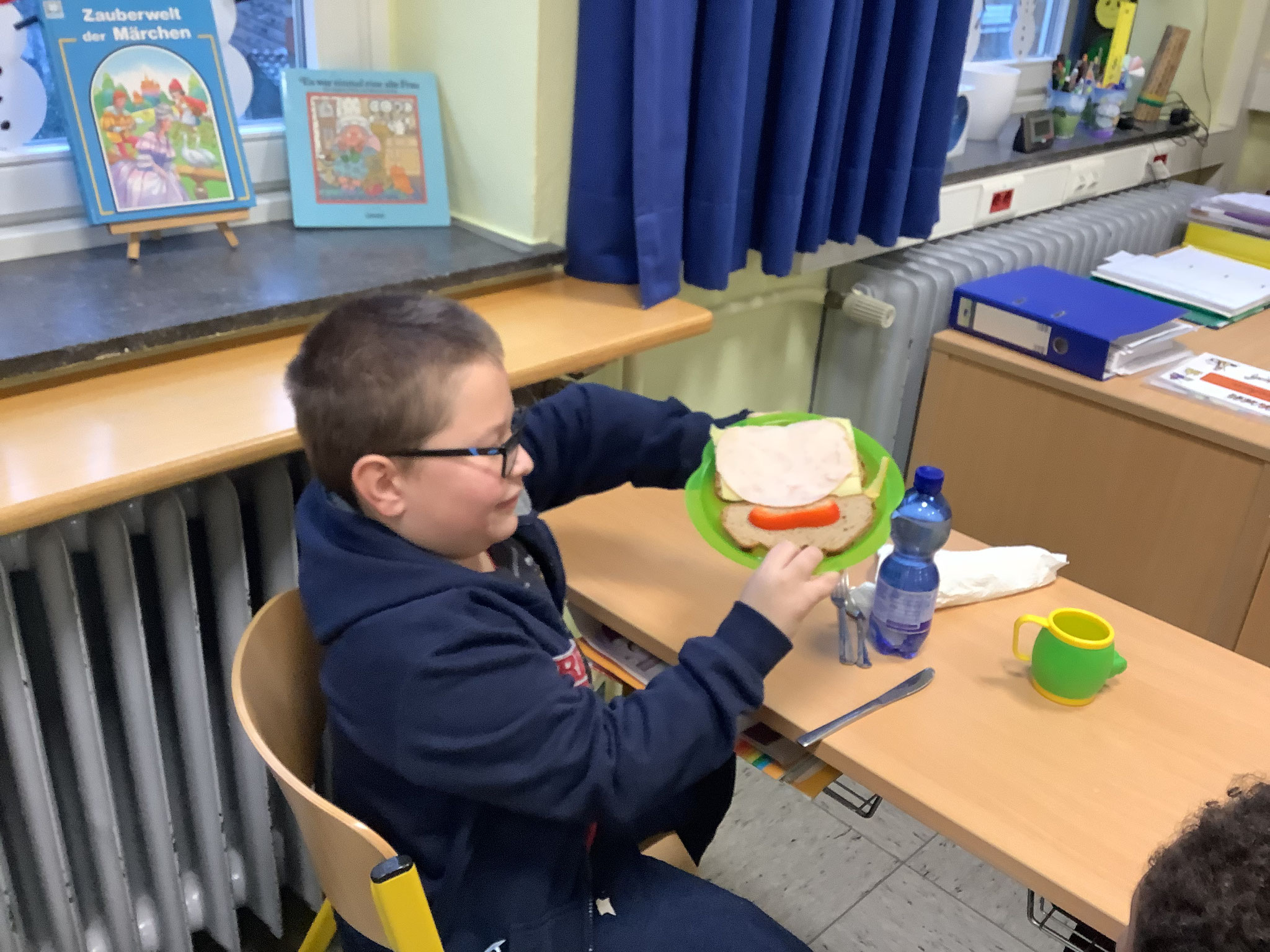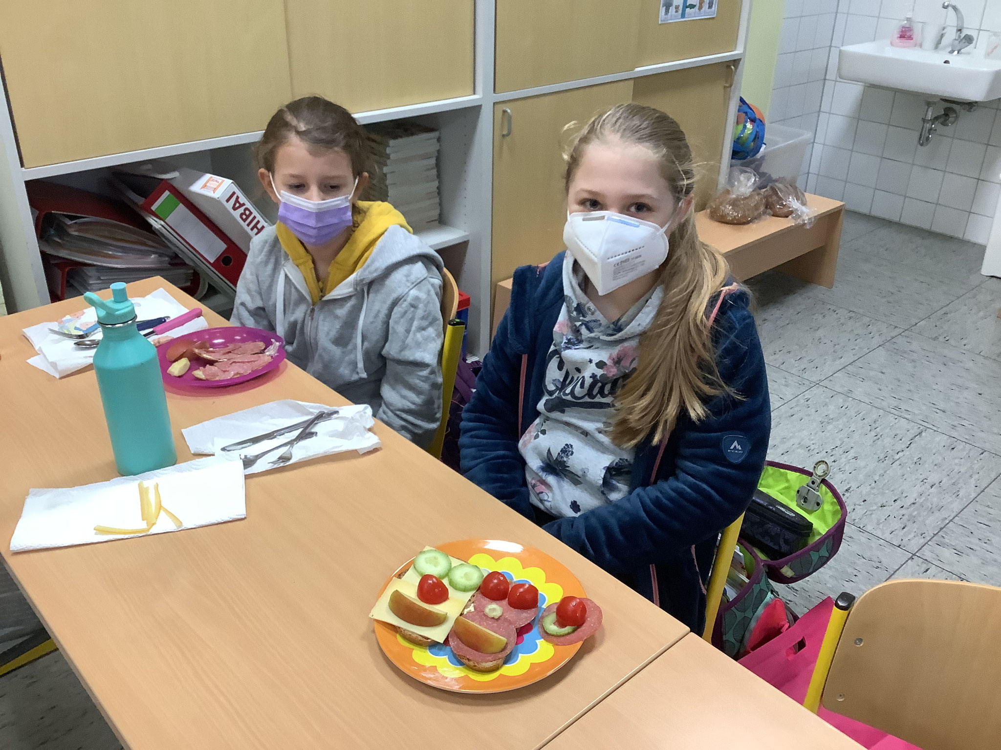 Am Gesundheitstag haben wir gemeinsam in der Klasse 4b gefrühstückt. Es gab frisches Brot, Käse, Aufschnitt, Obst und Gemüse. Daraus haben wir leckere Brotgesichter gemacht. Sehr lecker, es hat