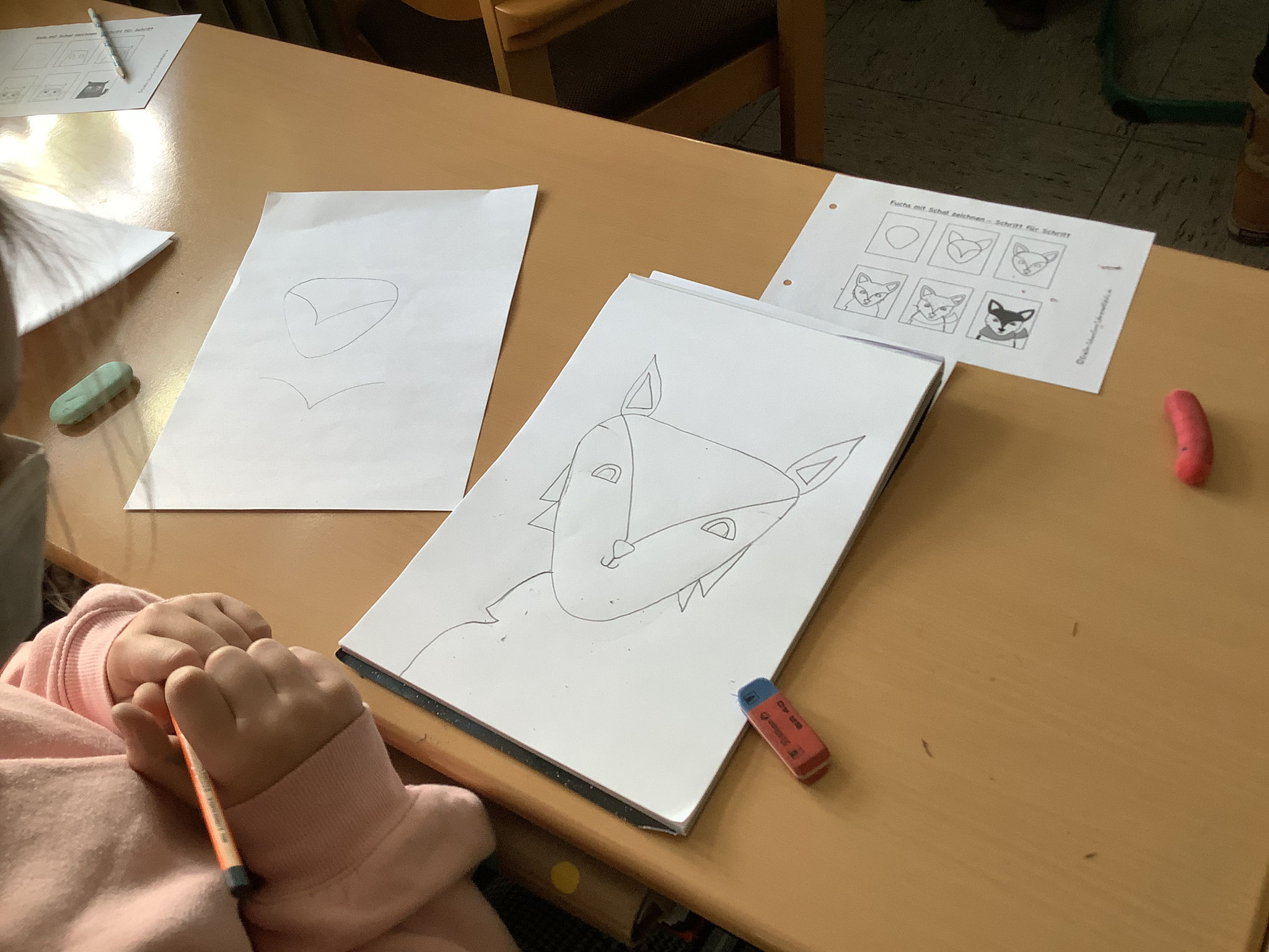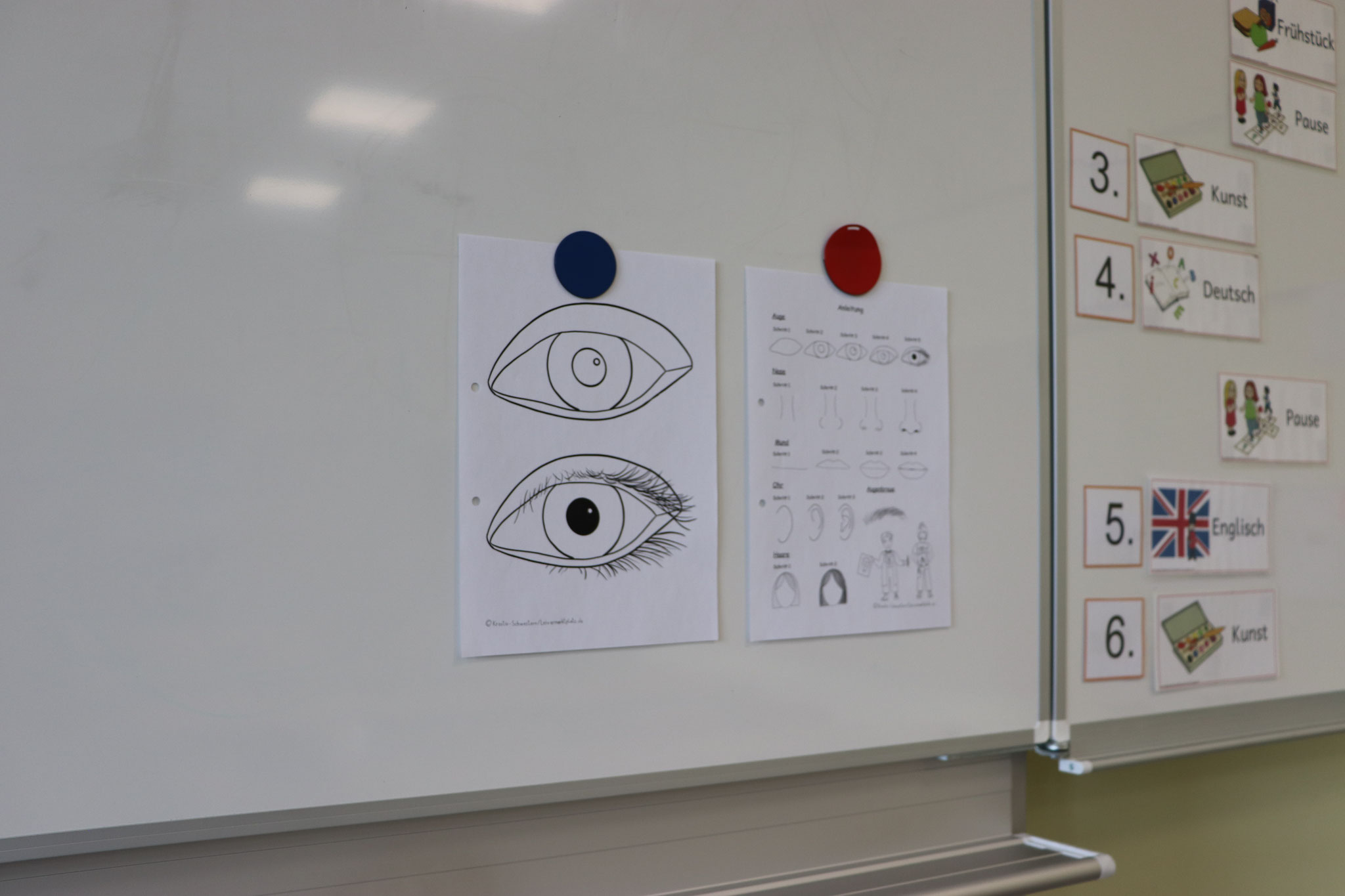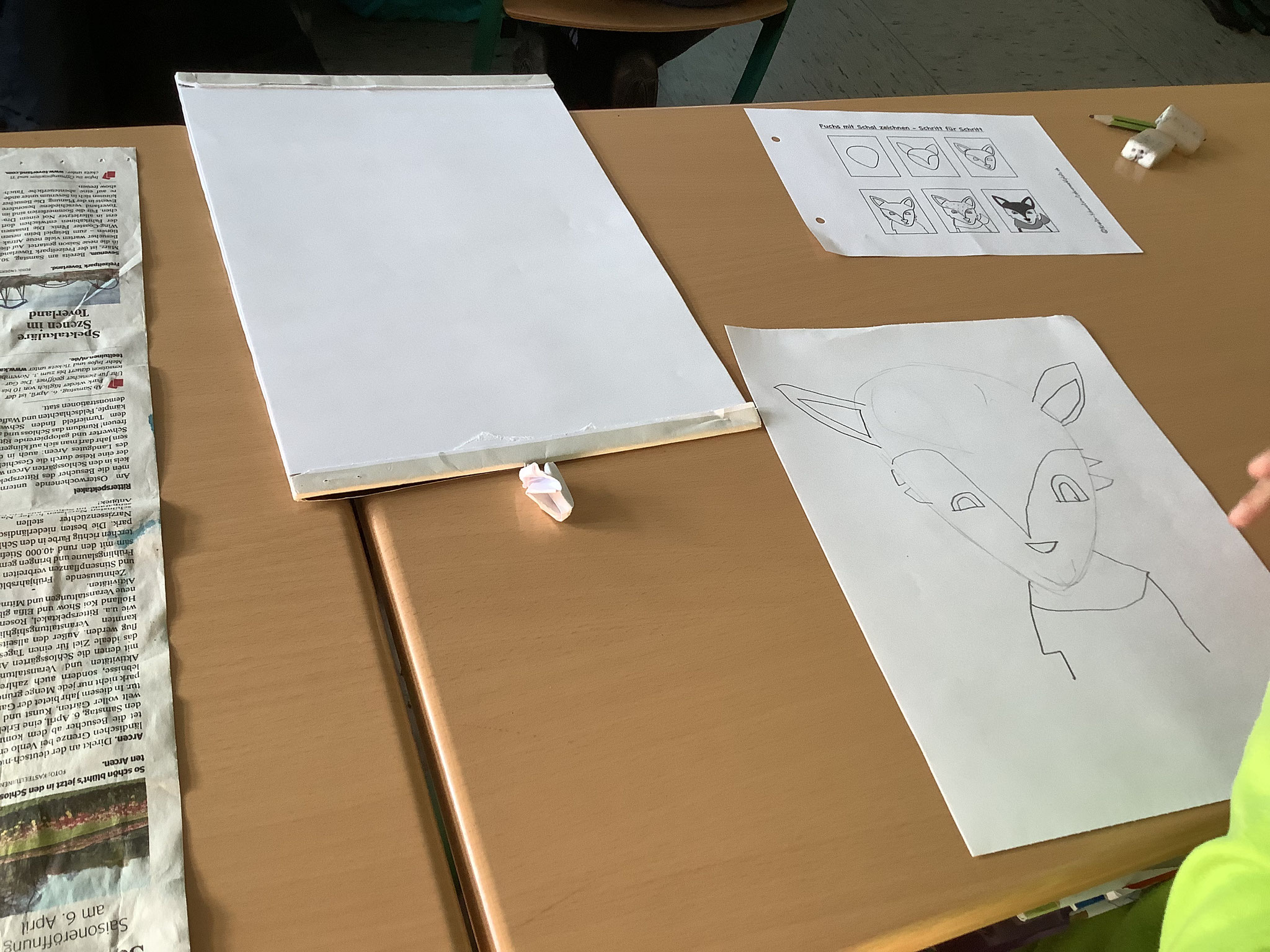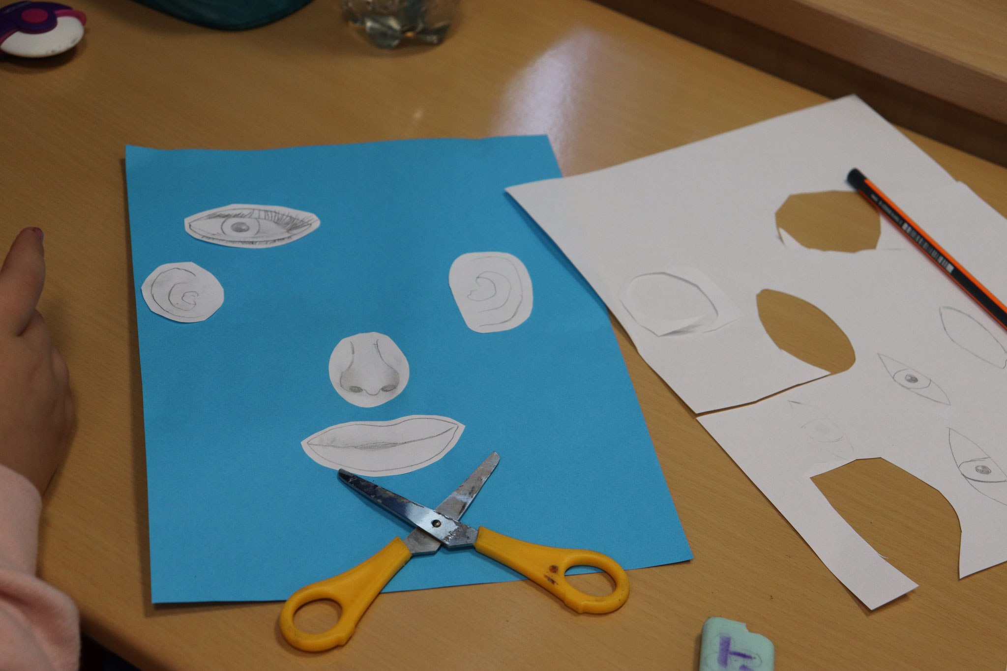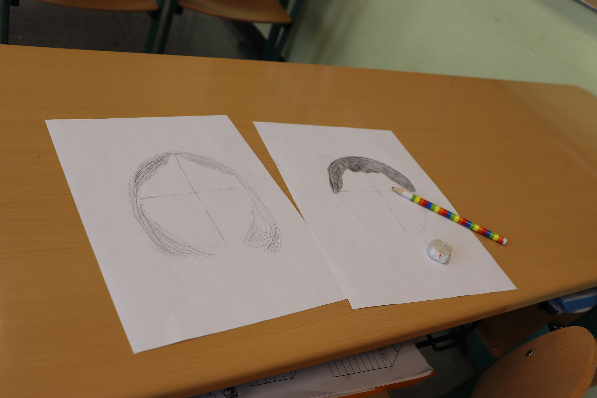 Augen, Nasen, Münder und die weiteren Teile des Kopfes zu zeichnen ist gar nicht so leicht. Eifrig haben die Kinder der Klasse 4a im Kunstunterricht einen Zeichenkurs gemacht. Nach und nach wurden so die verschiedenen Teile gezeichnet. Besonders wichtig war uns dabei, dass der Bleistift nicht zu fest über das Papier geführt wird. So hinterlässt man nach dem Radieren auch keine unschönen Spuren. Alles sollte 2 oder 3 mal geübt werden. Dann sollten die Kinder sich für ihre beste Zeichnung entscheiden. Diese wurde im Anschluss ausgeschnitten und auf ein buntes Blatt geklebt. Manche Kinder hatten die Idee, die Teile direkt so aufzukleben, dass ein Gesicht entsteht. Die Ergebnisse können sich auf jeden Fall sehen lassen.