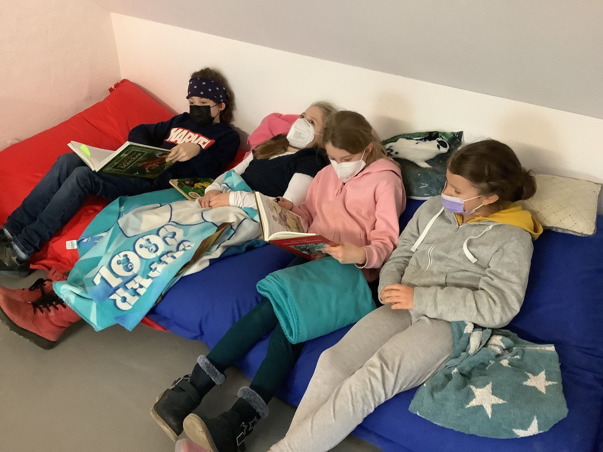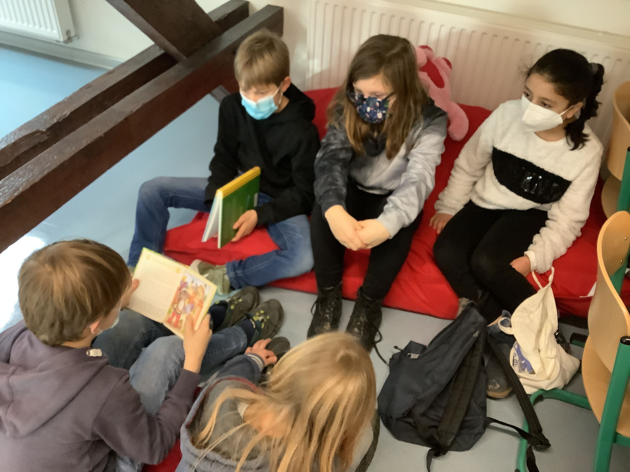 In den letzten zwei Wochen haben wir viel zum Thema „Märchen“ im Deutschunterricht gearbeitet. Zum Abschluss der Reihe durften wir Kinder uns gegenseitig Märchen in Kleingruppen vorlesen. Das war sehr gemütlich und hat Spaß gemacht.