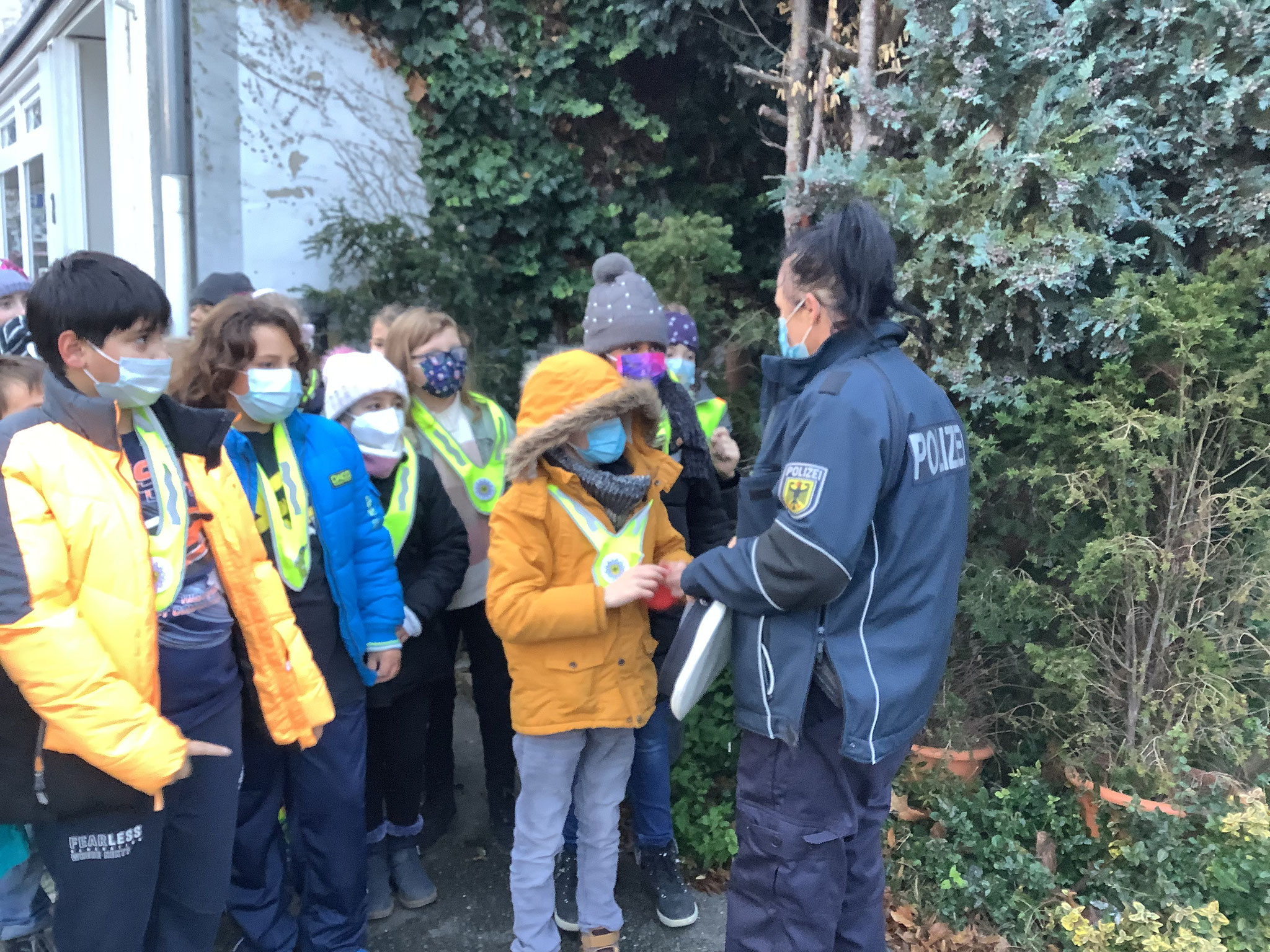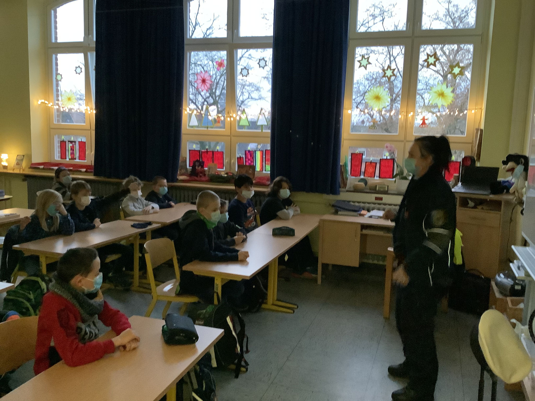 Im November besuchte Polizeihauptmeisterin Frau Ebers von der Bundespolizei die vierten Schuljahre. Zunächst fand im Klassenraum eine Unterrichtsstunde statt. Das Thema war: Bahn – Bahnanlagen: Wie verhalte ich mich richtig an Bahnanlagen? Was ist erlaubt, was darf ich auf keinen Fall. Die Kinder sollen aufgeklärt werden, wie gefährlich es ist, an Bahngleisen zu spielen.