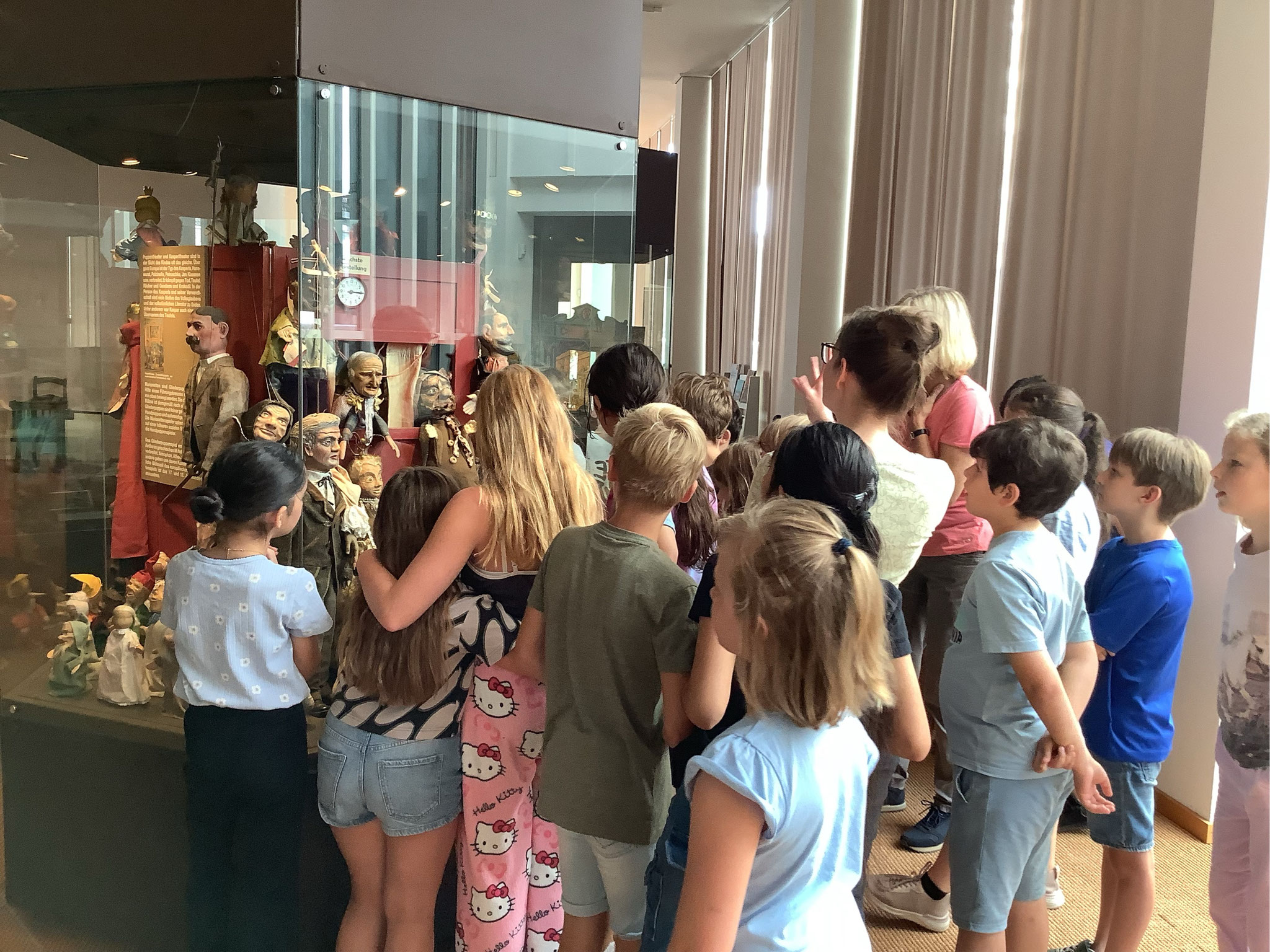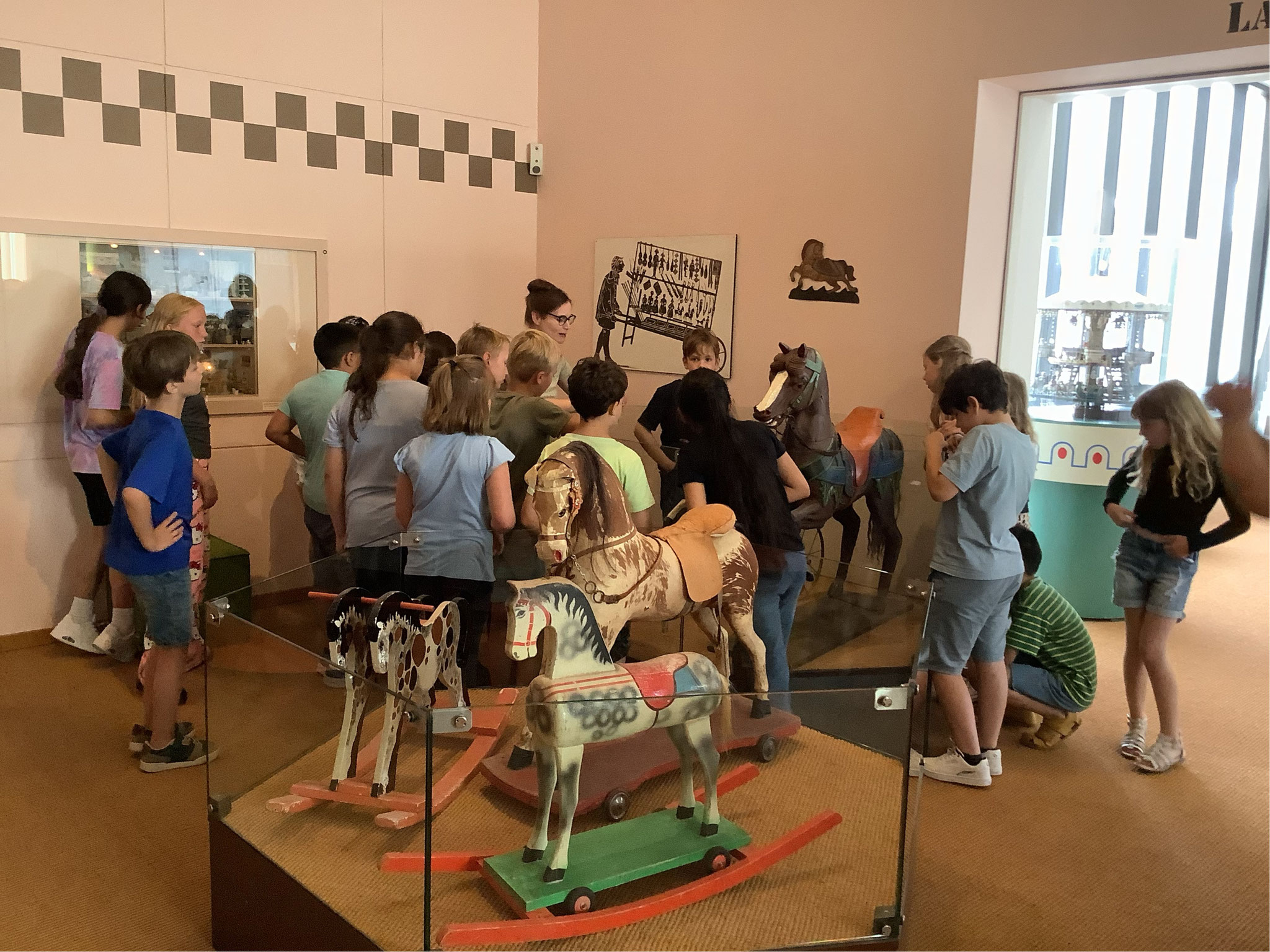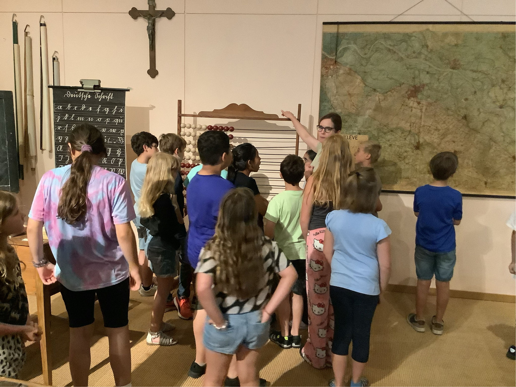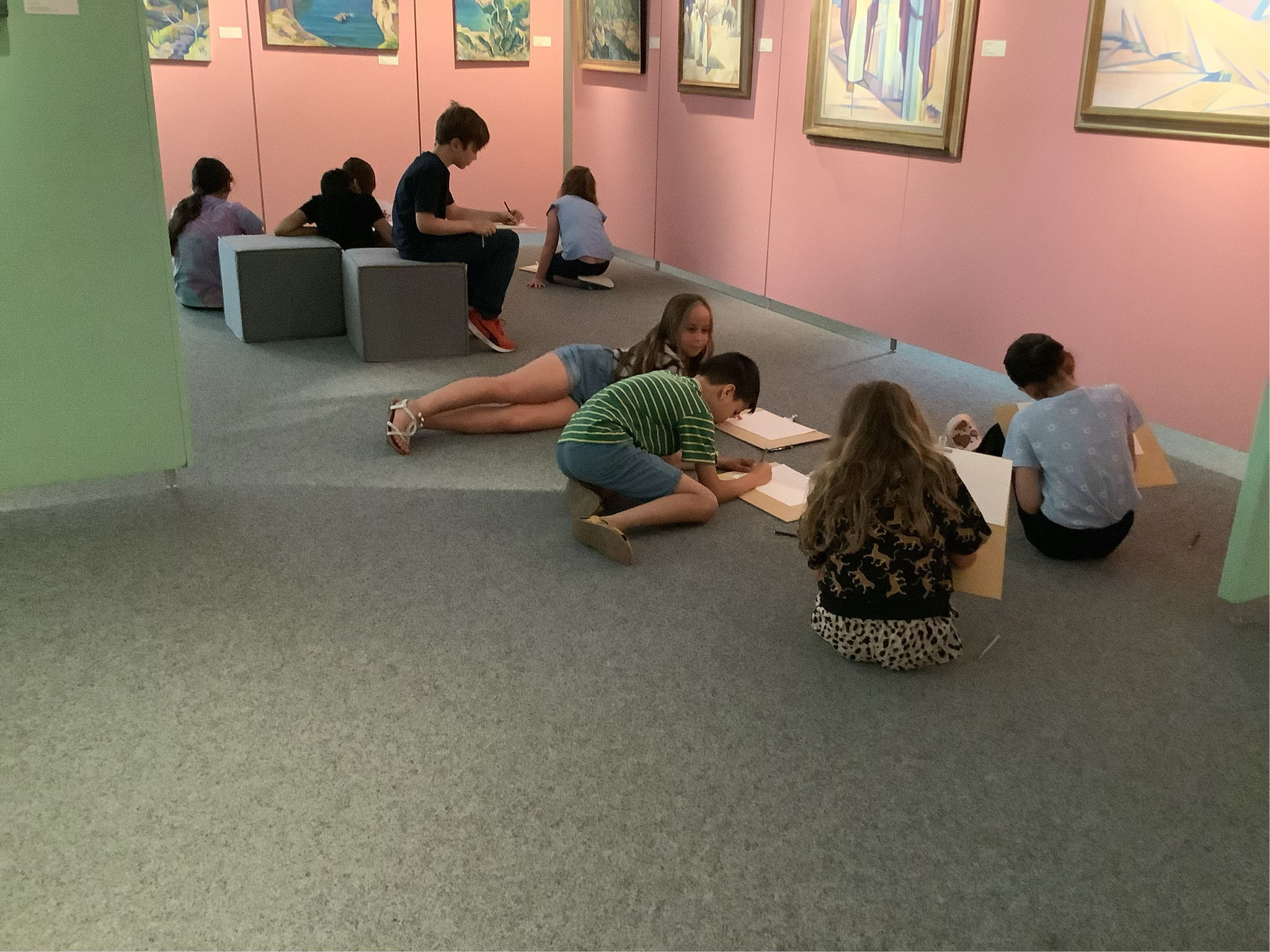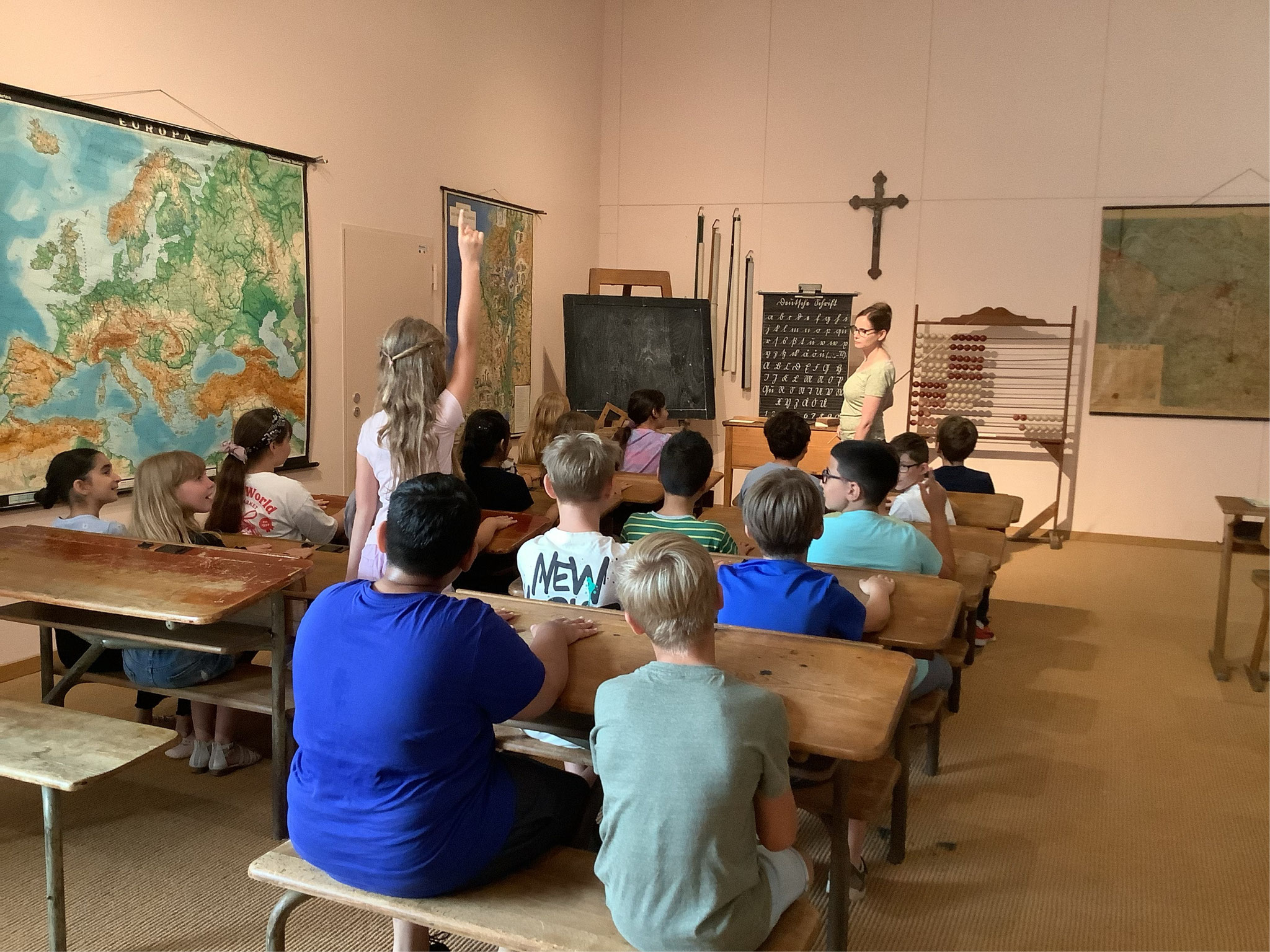 Die Klasse 3a hat gegen Ende des Schuljahres das Niederrheinische Museum in Kevelaer besucht. Zunächst gab es eine Führung durch mehrere Museumsräume. Wir haben uns die Spielzeugsammlung angeschaut und saßen in den alten Schulbänken. Die Kinder waren sich einig: Zum Glück ist Schule heute anders als früher. Nachdem wir uns die alte Küche angeschaut hatten sind wir in die Sonderausstellung gegangen. Die Ausstellung zeigt Werke des expressionistischen Künstlers Heiner Schlesing. Besonders beeindruckend waren die knalligen Farben und der besondere Malstil, den der Künstler verwendet. Die Kinder hatten im Anschluss daran den Auftrag mit dem Bleistift Skizzen anzufertigen, bei denen sie die Werke von Schlesing nutzen durften. Schließlich wurden die Skizzen auf großes Papier übertragen und dann mit unterschiedlichen Farben koloriert. Jedes Kind hat so sein ganz eigenes, tolles Kunstwerk erschaffen und kann sehr stolz auf sich sein.